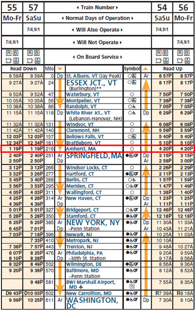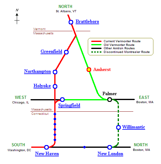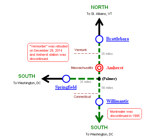 Note: Amtrak service to Amherst ended on December 29, 2014 due to reroute of Vermonter. |