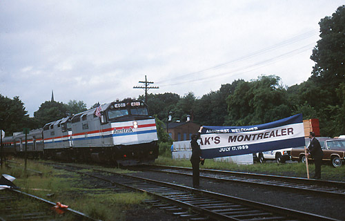 Amtrak Montrealer at Amherst Station (July 17, 1989)