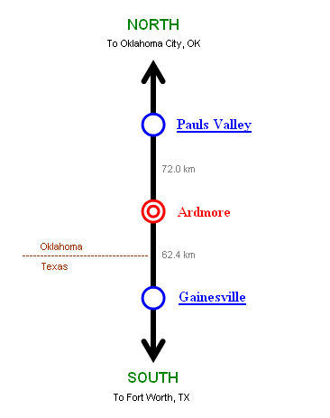 [ Oklahoma City, OK - Pauls Valley, OK - Fort Worth, TX ] |