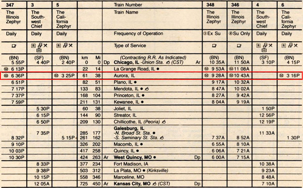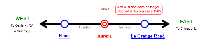 Note: Amtrak trains have no longer stopped at Aurora since 1985 |