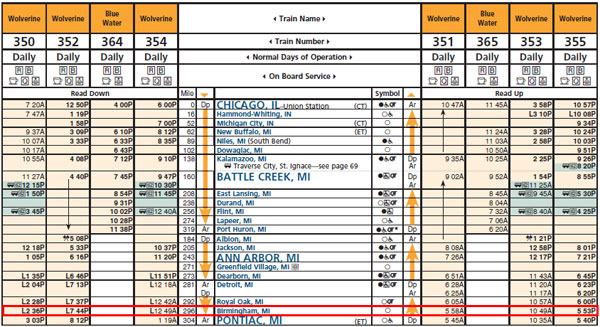 The last Amtrak timetable showing Birmingham Station (issued on June 9, 2014) (Source: ©2014 National Railroad Passenger Corporation) |
