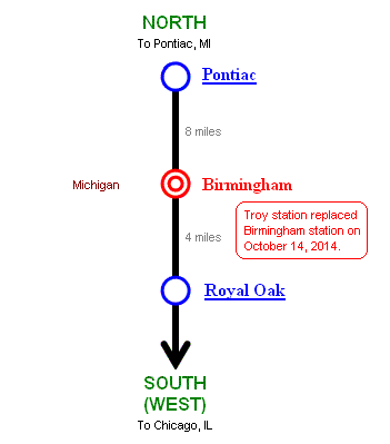 Note: Birmingham, MI has been no longer served since Troy replaced Birmingham on October 14, 2014. |
