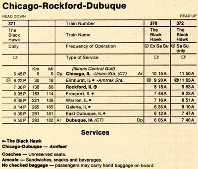 The last Amtrak timetable showing "Black Hawk" (issued on April 26, 1981) (Source: timetables.org ©1981 National Railroad Passenger Corporation)