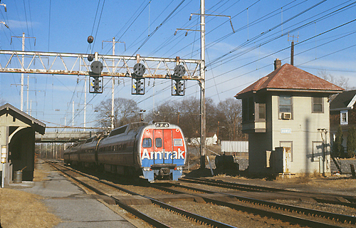 Amtrak Metroliner Train passing Bowie Station (February 1981) |