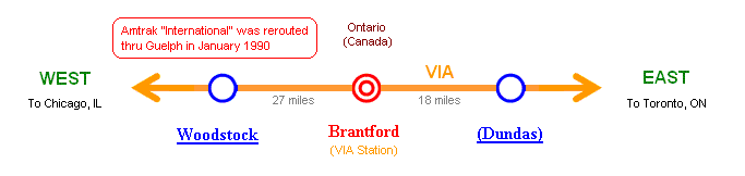 Amtrak International was rerouted thru Guelph in January 1990 |