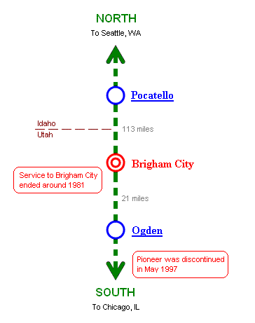 [ Chicago, IL - Denver, CO - Portland, OR - Seattle, WA ] Service to Brigham City ended around 1981 Discontinued on May 11, 1997 |