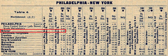 The first Amtrak timetable showing Bristol Station (issued on May 1, 1971) (Source: timetables.org ©1971 National Railroad Passenger Corporation) |