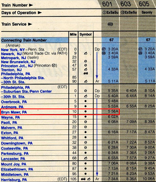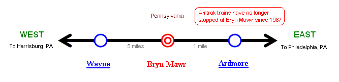 Note: Keystone has no longer stopped at Bryn Mawr since 1987. |