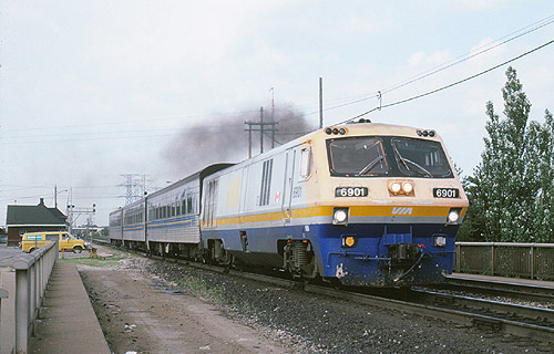VIA Train leaving Burlington West, ON Station (July 1984)