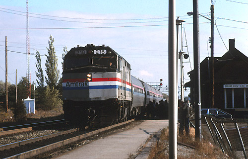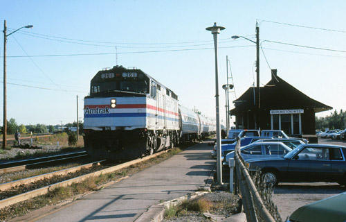 Amtrak Train at Burlington West, ON Station (October 1988)