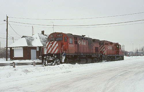 CP Locomotives at Burlington West, ON Station (January 1994) |