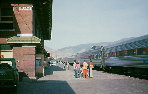 Amtrak Train arrived at Northern Pacific Butte Station (September 1974)
