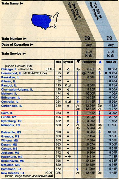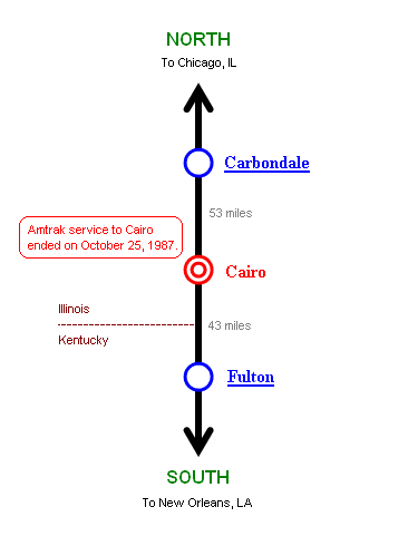 Note: Amtrak service to Cairo ended on October 25, 1987 |