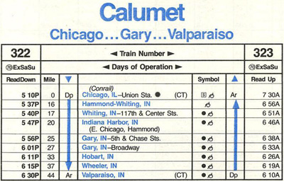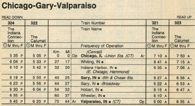 Amtrak timetable showing Indiana Connection and Calumet (issued on August 3, 1980) (Source: timetables.org ©1980 National Railroad Passenger Corporation)