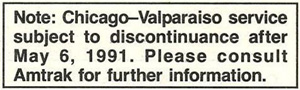 The last Amtrak timetable showing Calumet (issued on April 7, 1991) (Source: timetables.org ©1991 National Railroad Passenger Corporation)