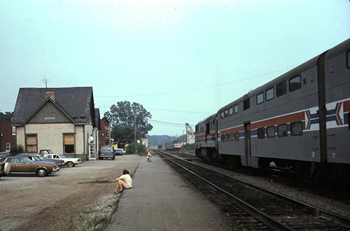 Amtrak "Indiana Connection" and "Calumet" at Valparaiso Station (August 1980)