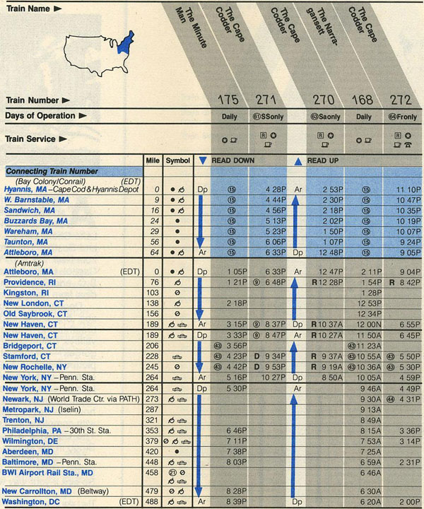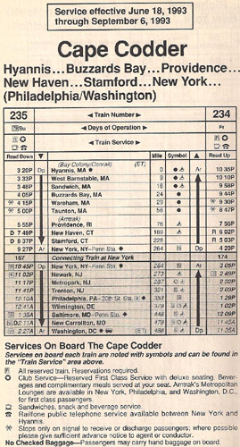Source: © Amtrak Northeast Timetable Spring/Summer 1993