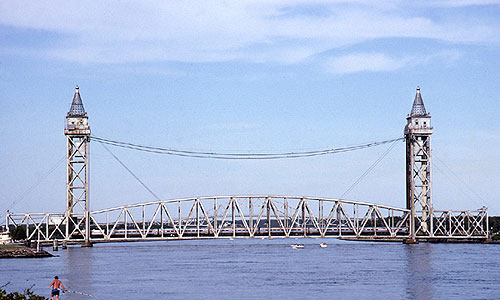 Amtrak Cape Codder crossing the bridge - Buzzards Bay, MA (July 1991)