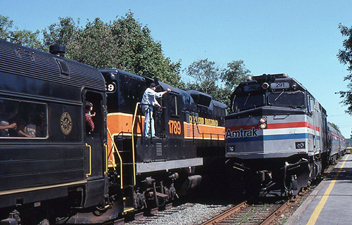 Amtrak Cape Codder met Cape Cod Railroad Train - West Barnstable, MA (September 1995) |