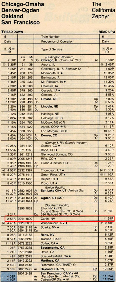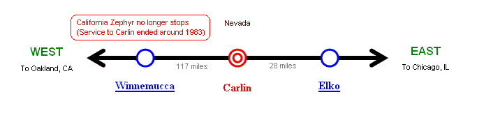 Note: California Zephyr no longer stops at Carlin (Service to Carlin ended around 1983) |