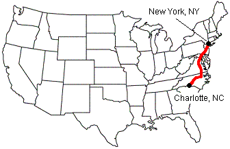 Note: Carolinian does not stop at the stations in parentheses ( ). Only Amtrak stations are listed. Commuter Train Stations are not shown. |