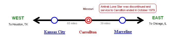 Note: Amtrak Lone Star was discontinued and service to Carrollton ended in October 1979. |