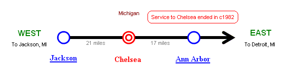 [ Jackson, MI - Ann Arbor, MI - Detroit, MI ] Note: Michigan Executive stopped at Chelsea, MI until c1982 |