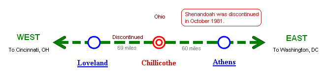 [ Washington, DC - Cumberland, MD - Parkersburg, WV - Cincinnati, OH ] Shenandoah was discontinued in 1981. |