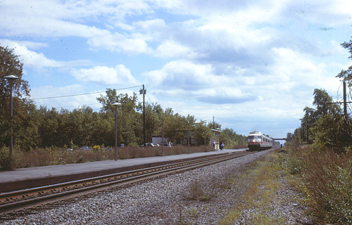 Amtrak westbound train arriving at Colonie Station (September 1979)