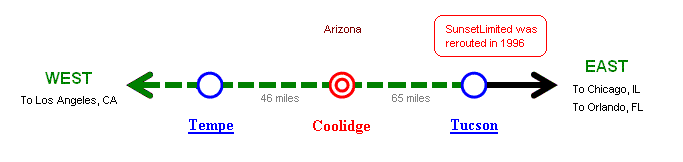 Note: Sunset Limited was rerouted thru Maricopa in 1996 |