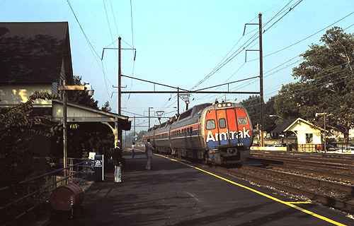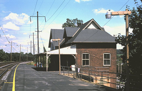 Former Penn RR Downingtown Depot demolished by a fire in 1990s (August 1985)