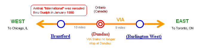 Amtrak International was rerouted thru Guelph in January 1990 |