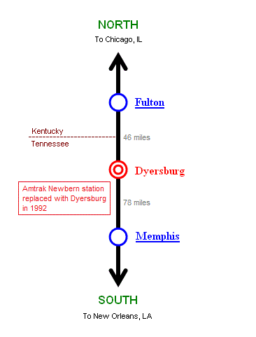 Amtrak Newbern station replaced with Dyersburg in 1992 |