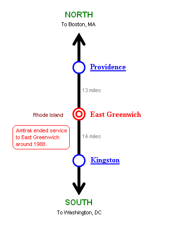 Note: Amtrak ended service to East Greenwich around 1988. |