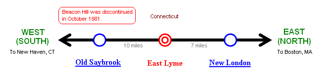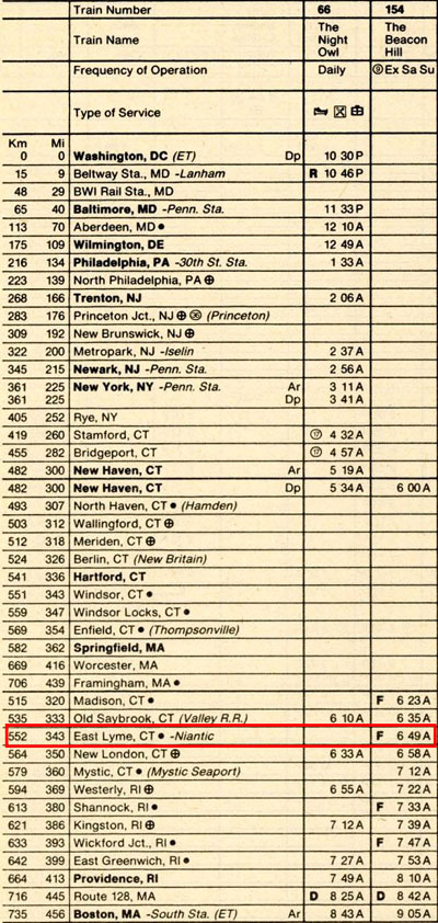 Note: Amtrak ended service to East Lyme (Niantic) in October 1981 due to discontinuance of Beacon Hill. |