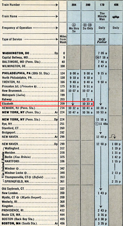 Note: Amtrak service to Elizabeth ended around 1975 |