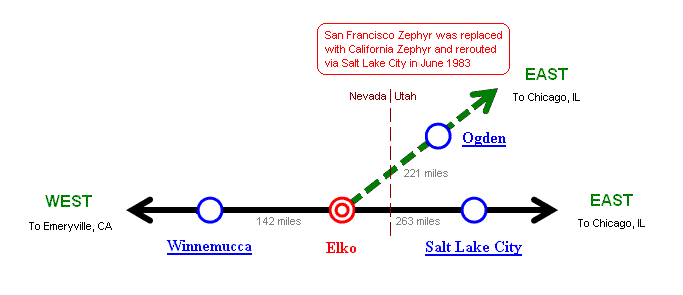The last Amtrak timetable showing Elko SP & WP Stations (issued on October 30, 1983) (Source: timetables.org ©1983 National Railroad Passenger Corporation)