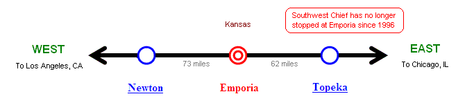 Note: Southwest Chief has no longer stopped at Emporia, KS since 1996 |