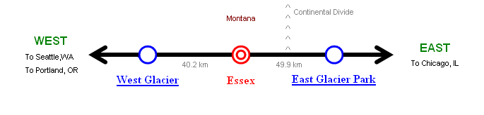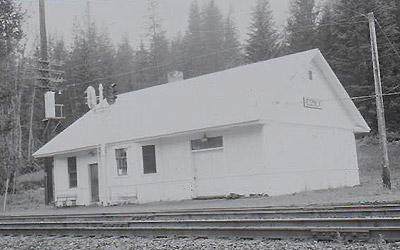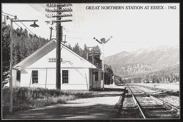 I bought this postcard at Izaak Walton Inn. This building was a former Essex depot located just across the railroad tracks from Izaak Walton Inn. Great Northern built the depot in late 1920's. The depot was torn down in 1992. You see the station name plate "ESSEX" on the depot. The name plate still exists and it is put on the hotel's storage (please see the above photo of storage). |
