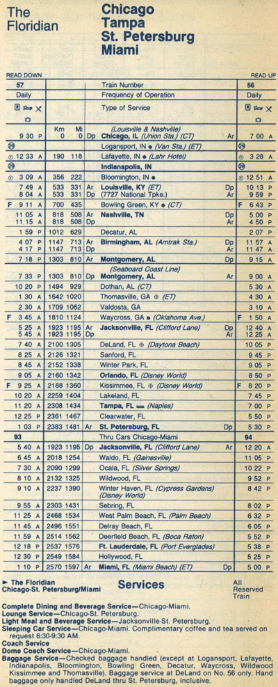The last Amtrak timetable showing Floridian (issued on July 29, 1979) (Source: timetables.org ©1979 National Railroad Passenger Corporation) |
