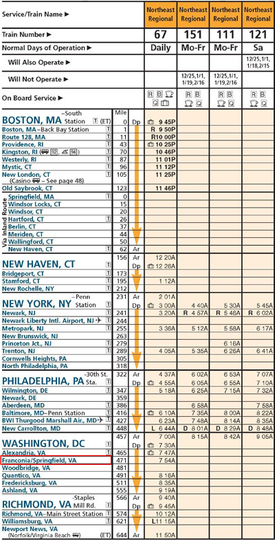 Note: NE Regional no longer stops at Franconia, VA (Service ended May 10, 2010) |