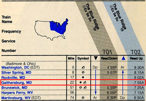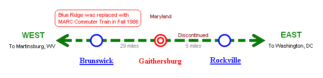 [ Washington, DC - Brunswick, MD - Martinsburg, WV ] Blue Ridge was replaced with MARC Commuter Train in Fall 1986. |