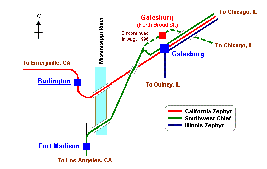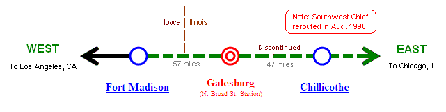 Note: Southwest Chief no longer stops at Galesburg, IL (N. Broad St.) due to rerouting in 1996 |