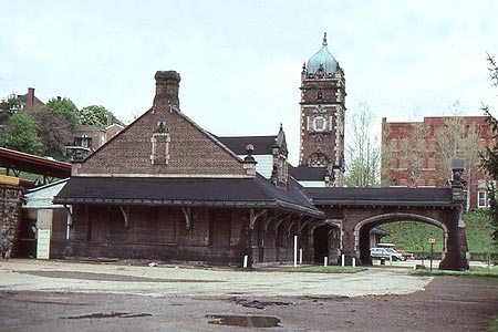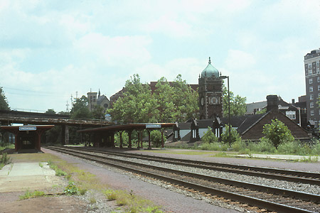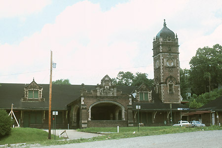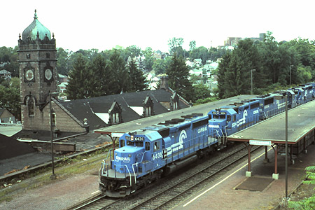 Conrail GP40-2 Freight Train passing Greensburg Station in 1992 |