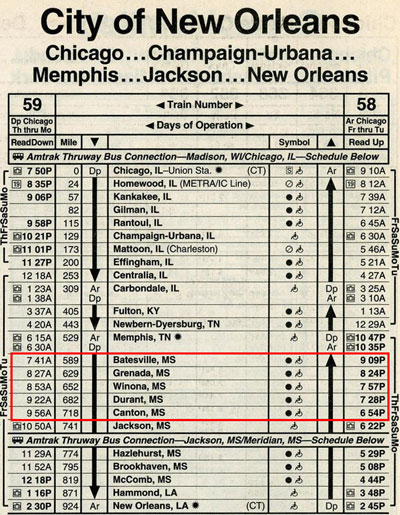 The last Amtrak timetable showing the Winona route (issued on June 11, 1995) (Source: timetables.org ©1995 National Railroad Passenger Corporation) |