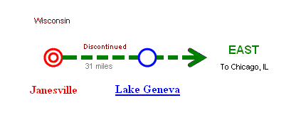 On April 15, 2000, Amtrak returned service to Janesville after a 29-year absence. On June 13, 2000, Lake Geneva, WI Station opened located between Janesville and Glenview, IL. The trains, Lake Country Limited (#343 and #344), ran one round trip daily first. Then, the service was reduced once a week on March 24, 2001 (Saturdays only). Finally, Lake Country Limited was eliminated on September 23, 2001. Lake Country Limited was really short-lived train. |