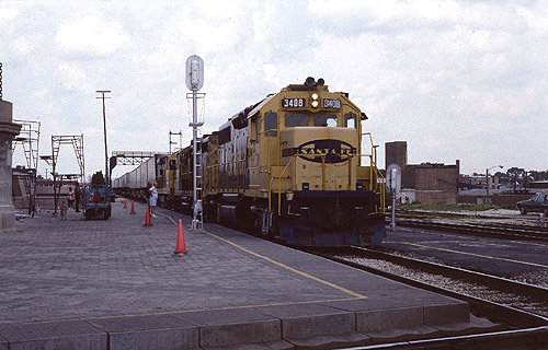 Santa Fe GP35 3408 at Joliet Station (July 1990)