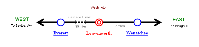Amtrak Station, Leavenworth, WA opened on September 25, 2009. This station is unstaffed and has a platform with shelter only. The location of the station is 1.5 miles northeast of Leavenworth Downtown. Amtrak News Release - New Leavenworth Station (pdf)