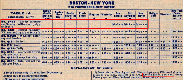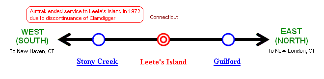 Note: Amtrak ended service to Leete's Island in 1972 due to discontinuance of Clamdigger. |