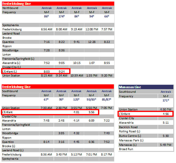 Note: NE Regional stops at L'Enfant as VRE commuter service. |